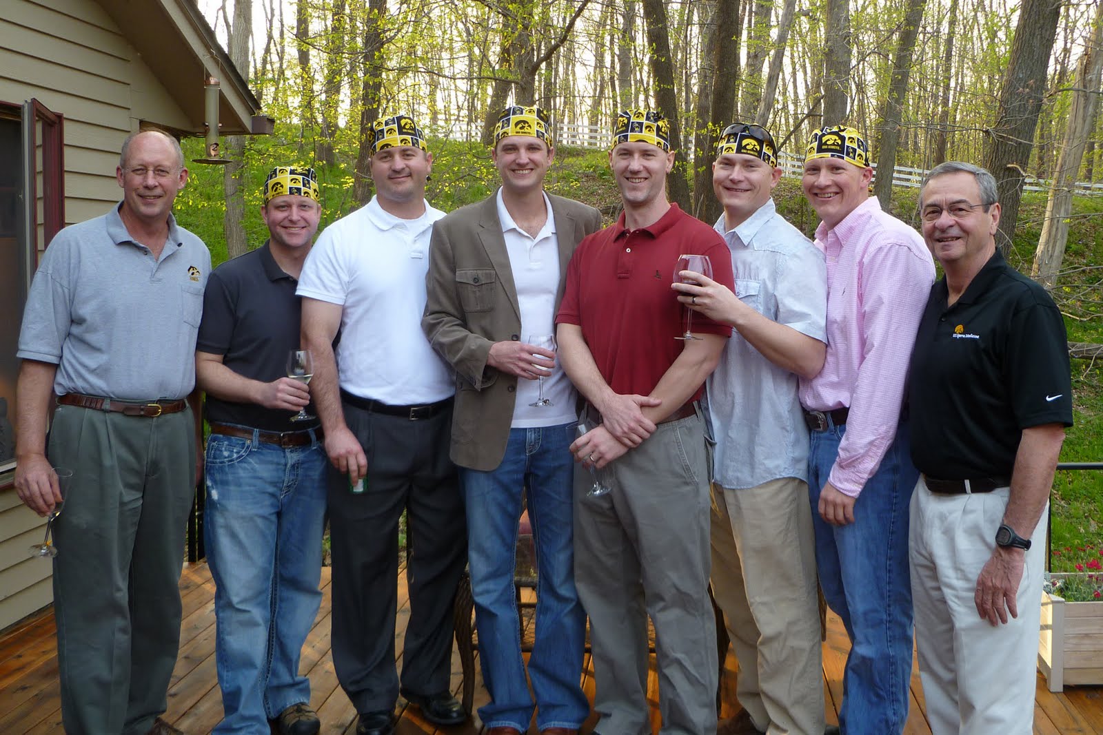 Randy will complete his Orthopaedic Surgery Residency at the end of June - WAHOO! We've had many fun dinners with the Department Staff and fellow residents the past few months. Here he is at a dinner with the guys and Dr.s Marsh & Buckwalter after they were given custom Hawkeye scrub caps: